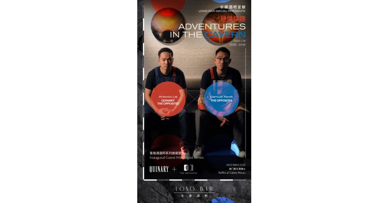 MACAU SAR – Media OutReach Newswire – 14 January 2025 – Galaxy Macau™ is proud to unveil the monthly “Adventures in the Cavern – Guest Mixologist Series” at Long Bar at Raffles, an initiative that elevates the Long Bar sensory experience to dizzying new heights. Beginning in January, this monthly series will showcase some of the world’s most celebrated mixologists, including award-winning talents recognized by the “World’s 50 Best Bars” and “Asia’s 50 Best Bars.” Cocktail enthusiasts can anticipate an exceptional roster of guest mixologists. The series will launch on January 18, featuring Antonio Lai and Samuel Kwok, co-founders of one of Hong Kong’s most dynamic new establishments—The Opposites—who will headline the inaugural event.