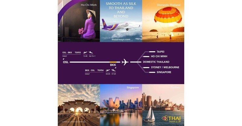 Hashtag: #ThaiAirways #Thai #Bangkok #Oslo #Norway #Nordics #APACHub #AlwaysThai #flights