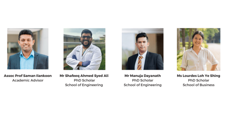 Led by Associate Professor Saman Ilankoon from the university’s School of Engineering, the team consisted of PhD scholars Shafeeq Ahmed Syed Ali and Manuja Dayanath from the School of Engineering, and Lourdes Loh Ye Shing (Morgan) from the School of Business. Their proposal beat finalists from other top universities, including University College London, University of Hamburg, and Tsinghua University.