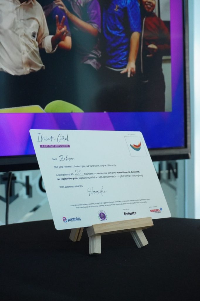 “The Ihsan Card is more than a gift — it’s a reminder that generosity can have a lasting impact,” said Reeda Hj Malik, General Manager of Print Plus Sdn Bhd. “We hope it inspires a culture of kindness and shared responsibility across our community.”