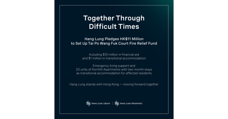 HONG KONG SAR – Media OutReach Newswire – 27 November 2025 – Hang Lung Group and Hang Lung Properties (“Hang Lung”) express deep sorrow and profound concern following the severe fire that occurred yesterday at Wang Fuk Court, Tai Po. Our condolences go out to all affected residents. In response to this tragic event, Hang Lung is committing a total of HK$11 million to set up Tai Po Wang Fuk Court Fire Relief Fund, combining financial aid and accommodation support.