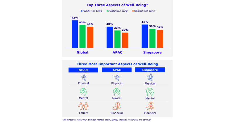 On a regional level, overall well-being in Asia Pacific lags behind the global average, with less than three in 10 (28%) Asia-Pacific respondents rating their overall well-being as “excellent” or “very good”, compared to four in 10 (41%) globally. While physical and mental well-being are the two most important aspects of well-being for respondents globally, financial well-being is more important for those in Asia Pacific, coming in as the third most important aspect. With financial well-being remaining the weakest aspect across the globe, there is a pressing need for governments and organizations to render support to address financial concerns.