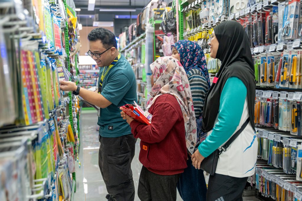 The initiative took place at Samima Sdn Bhd Madang branch, where Gleneagles JPMC volunteers gathered to meet the families and accompany the students as they selected the school supplies they needed for the upcoming year.