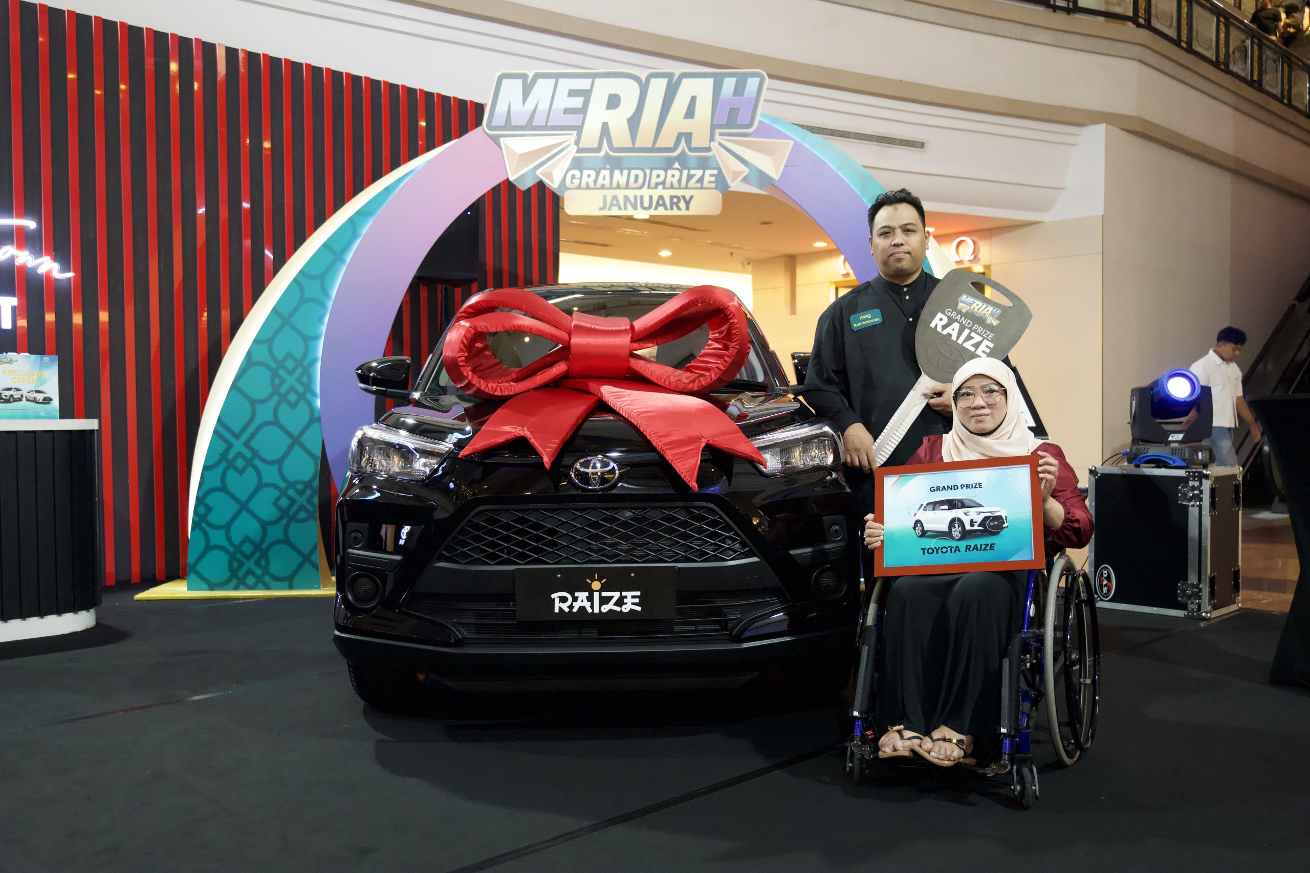 Awang Ramzuzaman Awang Ismail emerged as the grand prize winner of a brand-new Toyota Raize at Toyota Brunei’s January “Meriah Ria” campaign Grand Draw, held recently at the Atrium, The Mall Gadong.