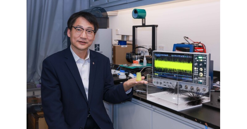 HONG KONG SAR – Media OutReach Newswire – 5 March 2026 – Sea urchin spines are not only for defence—they also act as natural sensors. A research team led by Prof. WANG Zuankai, Associate Vice President (Research and Innovation), Dean of Graduate School, Kuok Group Professor in Nature-Inspired Engineering and Chair Professor of the Department of Mechanical Engineering of The Hong Kong Polytechnic University (PolyU), together with scholars from City University of Hong Kong (CityU) and Huazhong University of Science and Technology (HUST), has discovered the mechanoelectrical perception in sea urchin spines, originating in their gradient porous structure, that allows the spines to instantly detect water flow. Using 3D printing, the team has replicated this structure and developed a bionic metamaterial sensor, which holds promise for breakthroughs in sensing technology. This innovation will drive the advancement of deep-sea technology such as marine monitoring and underwater infrastructure management, and can be extended to other emerging fields like brain-computer interfacing and aerospace.