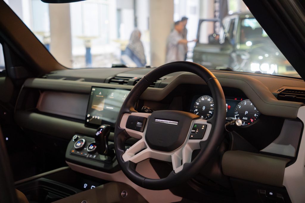Inside, a new 13.1-inch touchscreen for the infotainment system brings Defender’s technology highlights to front-row occupants via a larger display positioned above the ergonomically repositioned dash-mounted gear shifter.