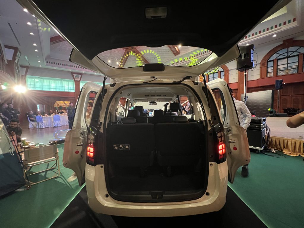 The compact MPV measures 4,311mm in length, 1,695mm in width and 1,754mm in height with a 2,740mm wheelbase, offering a spacious interior within a compact footprint. Its seven-seater configuration includes 60/40 split second-row seats and 50/50 flip-up third-row seats, allowing flexible adjustments between passenger and cargo space.