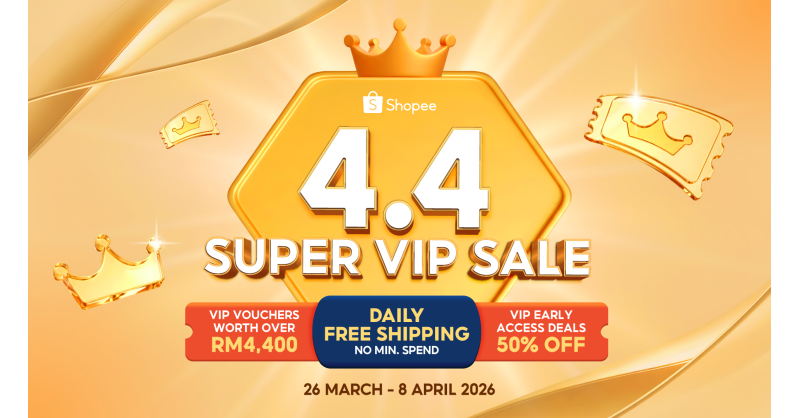 This Shopee 4.4 Super VIP Sale brings together Daily Free Shipping with No Minimum Spend, early access deals of up to 50% off, and VIP vouchers worth over RM4,400, giving members more ways to benefit across every purchase.