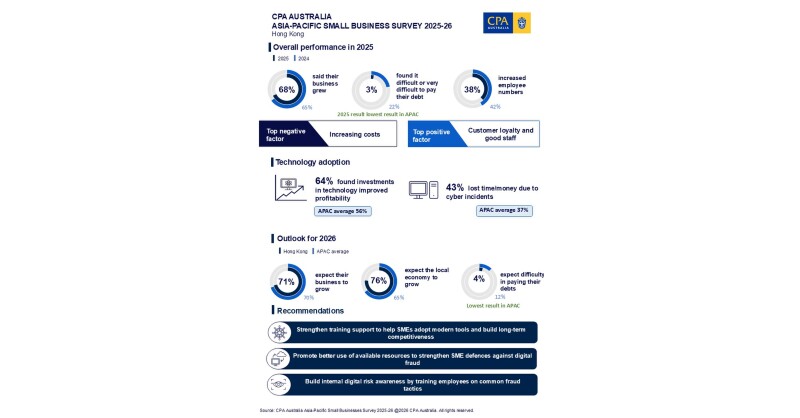 HONG KONG SAR – Media OutReach Newswire – 23 April 2026 – Hong Kong’s small businesses delivered their strongest performance in a decade in 2025, while confidence in the year ahead has climbed to a record high, according to CPA Australia’s latest Asia‑Pacific Small Business Survey 2025–26.