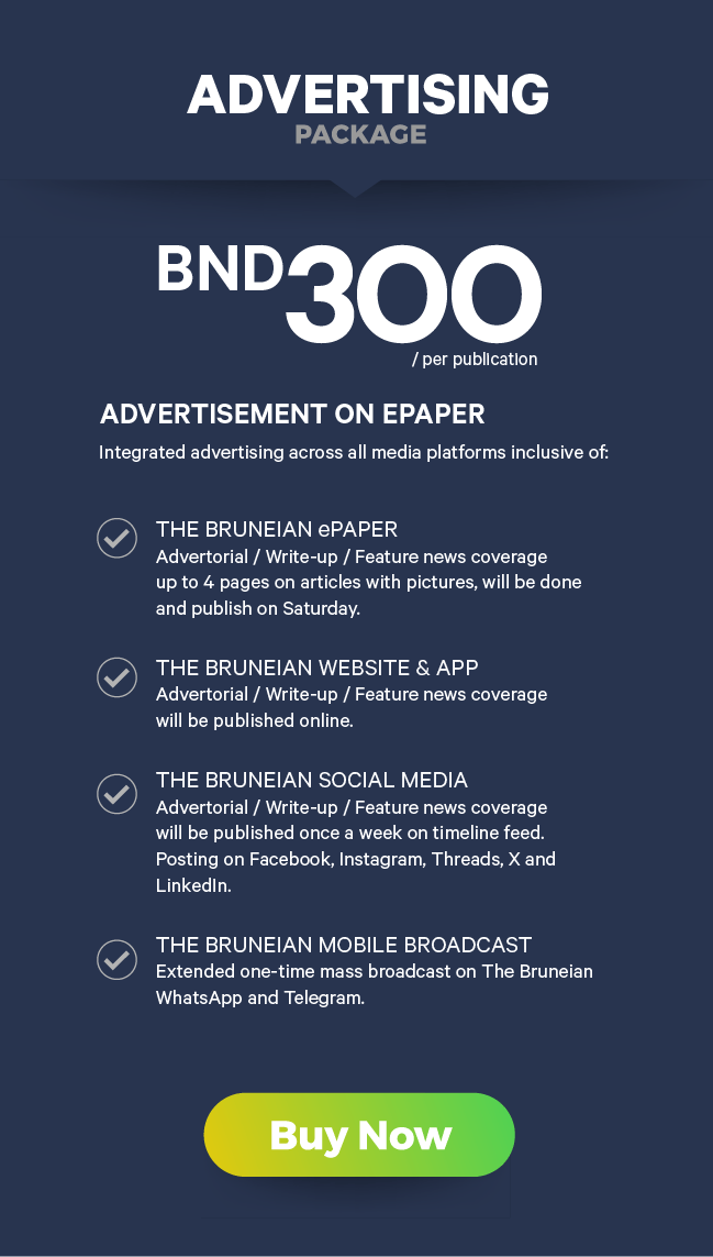 Advertorial / Write-up / Feature news coverage will be published online. - THE BRUNEIAN SOCIAL MEDIA